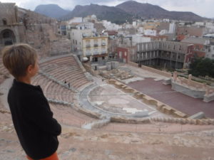 Au regard des fichiers Grib* des jours à venir, nous décidons de rester à Carthagène jusque mardi. Ce matin, c’est laverie et ship*. Cet après-midi c’est école et visite de l’ancien théâtre romain de Carthagène magnifiquement rénové.