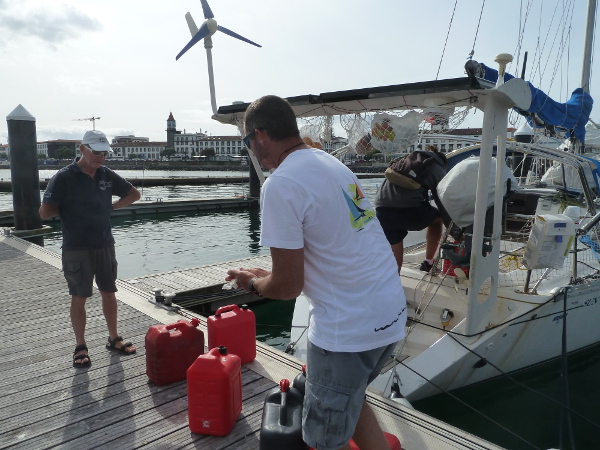 Mon conseil : remettez tout en ordre à Horta, bateau et équipage, passez boire une bière et acheter un tee shirt chez Peter et, pour l’avion, changez d’île ensuite. Attendre la bonne fenêtre, ensuite, pour se lancer dans la dernière étape. Vous avez le choix de La Corogne ou plutot Bayonna jusqu’à l’Algarve en faisant très attention au Cabo Sao Vicente, particulièrement dangereux avec du vent d’E à S. Si vous voulez d’autres précisions, demandez.